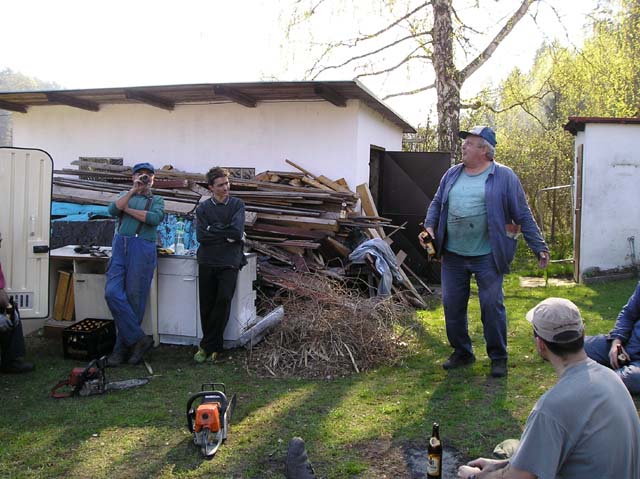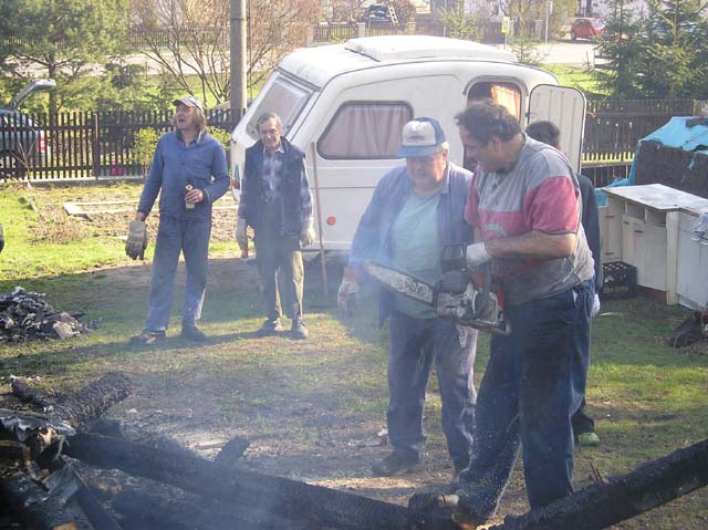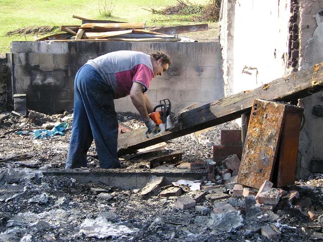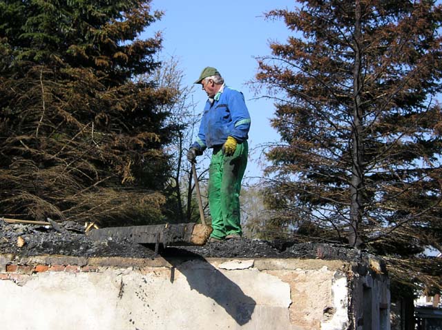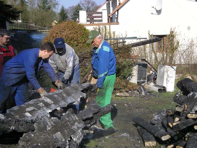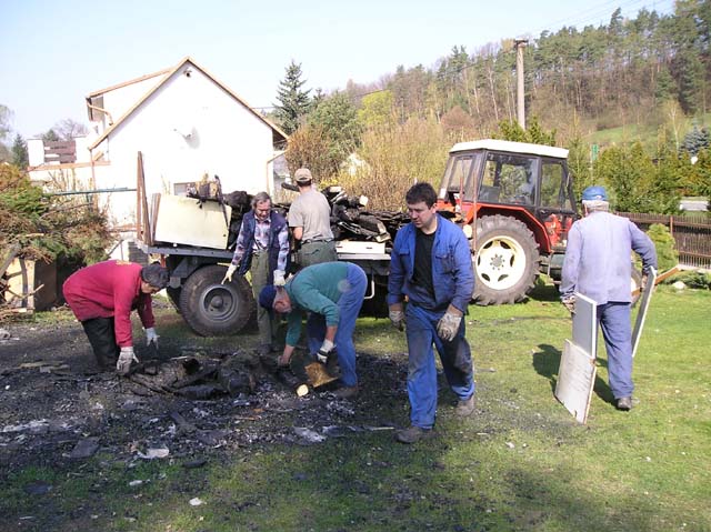 "Co si hasič neuhasí, to si musí uklidit". Tak s tímto heslem vyrazila parta dobrovolných hasičů z Rokyty pomoci uklidit vyhořelou chatu Ladislava Dolečka v Dolní Krupé. Byť bylo právě po Velikonoční zábavě, kdy někteří opouštěli parket až v 5 hodin ráno, sešla se početná parta, která během pár hodin zlikvidovala zbylé trosky.