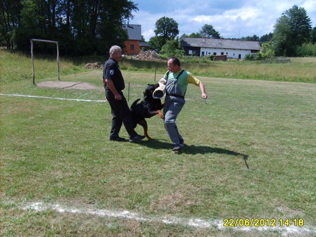 V pátek 22.6. nás navštívila Městská Policie Mladá Boleslav s ukázkou psího výcviku a sebeobrany. Myslím, že to byl přesný zásah do duší malých kluků a holek. Představa umět se bránit a mít vedle sebe psa, s kterým se nebojíme, je bezpečný a příjemný pocit. Viz foto.