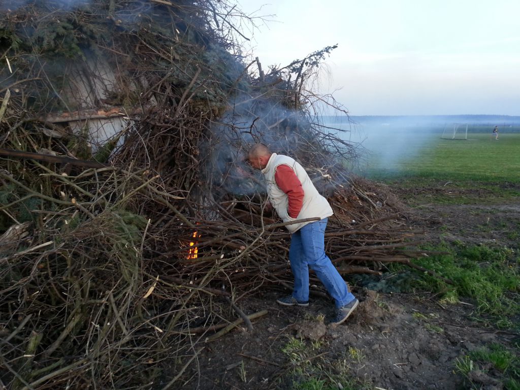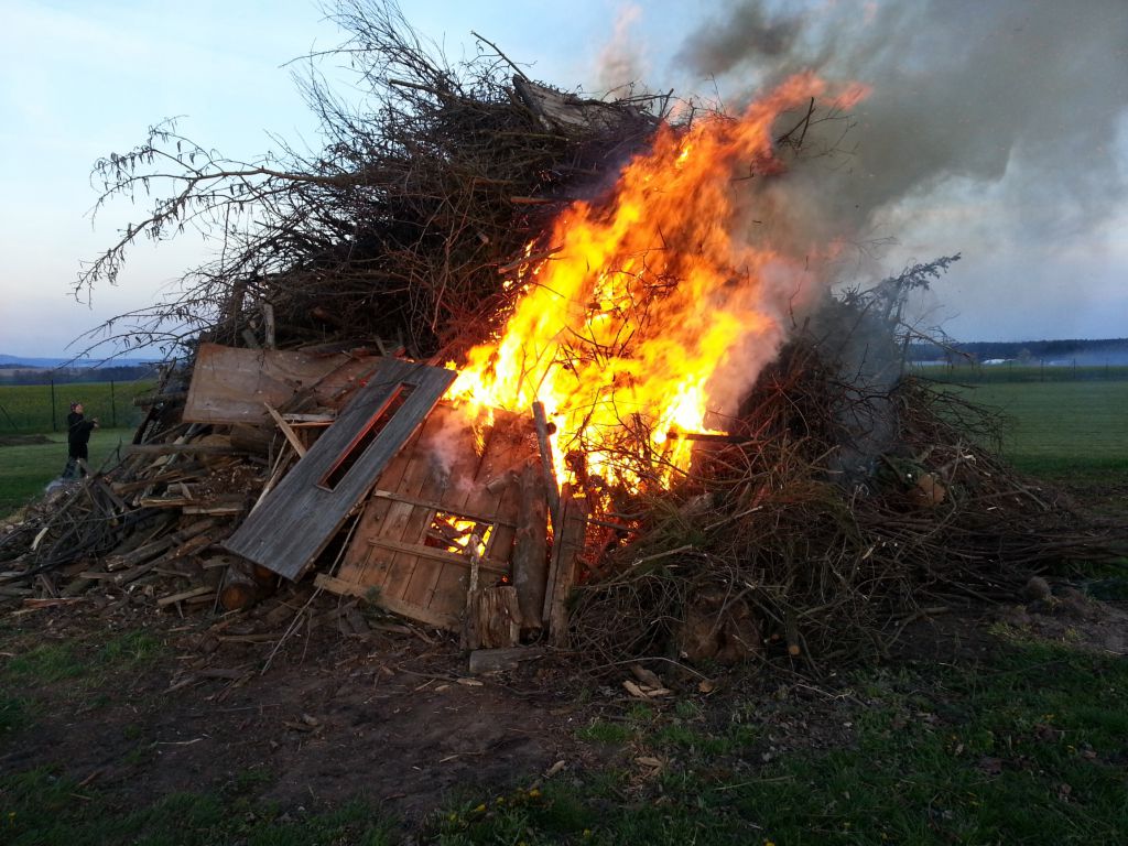 Ve 20:00 potom vzplála samotná čarodějnická vatra. Plameny v krátké chvíli pohltily hromadu složenou výhradně z roští a dřevního odpadu neopatřeného nátěry. Je vidět, že si občané již zvykli, že se jiný odpad na čarodějnice nevyváží. OÚ za to všem děkuje.