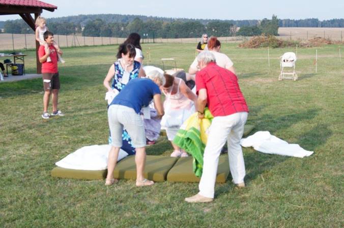 První stanoviště bylo povlékání postelí a následné svlékání postelí. Vše bylo na čas. A soupeřily vždy dva týmy.
