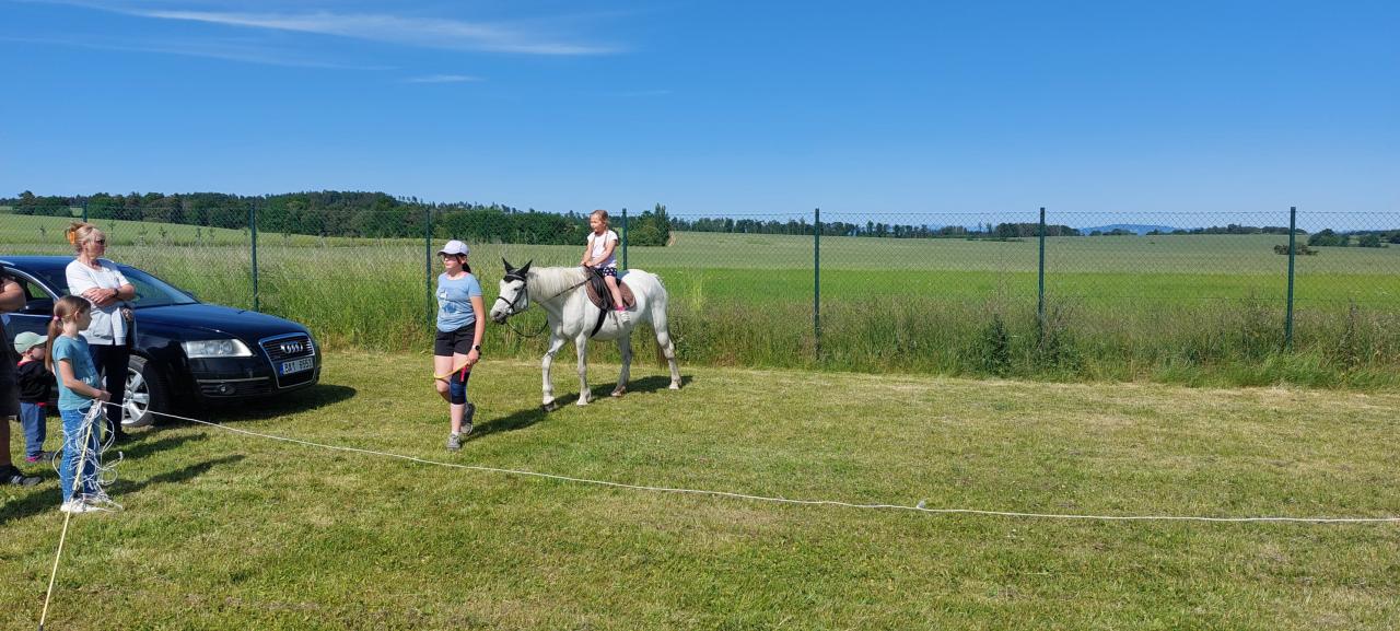 Dětský den 2023 Dne 3.6.2023 v 15 hodin odstartoval v našem Volnočasovém areálu další ročník oblíbeného dětského dne. Počasí až na občasné fouknutí větru vyšlo skvěle. Na letošním dětském dni se sešlo 61 dětí v doprovodu maminek, tatínků, babiček, dědečků.... Bylo nás opravdu hodně. Pro děti byla již tradičně malinovka a párek v rohlíku zdarma. Dále pro děti byly připraveny úkoly na deseti stanovištích a za úspěšné splnění úkolu dostali malou odměnu a razítko na kartičku. Za odevzdanou vyplněnou kartičku si v cíli mohly vybrat svoji věcnou cenu. Dále pro děti bylo připraveno malování na obličej a dočasné tetovaní pod odborným vedením paní Krejčové z Prahy. Nesměl chybět ani oblíbený skákací hrad který pro nás obstarali manželé Kyptovi. Dále nás navštívil zlomek klubu amerických aut US Cars North, kde děti za odpověď na lehkou otázku mohly získat také malou sladkou odměnu. Od 16 hodin se děti mohly svézt na krásných koních které nám půjčila ze své stáje paní Monika Marušková. Po skončení soutěží si nejen děti, ale i dospělí mohli zkusit zastřílet na plechovky z airsoftových zbraní. Střelba byla pod vedením a dohledem Jakuba Čelikovského. Občerstvení nám zajistila naše Maruška Ferklová se svým týmem. O hudební kulisu celého dne se nám staral pan Oskar Marek se svými pomocníky. Poděkování tedy patří Marušce za občerstvení, manželům Kyptovým za skákací hrad, paní Monice Maruškové a jejím pomocnicím za koně, paní Krejčové za malování na obličej a dočasné tetování. Klubu US Cars North děkujeme za výstavu automobilů. Panu Oskaru Markovi za zapůjčení aparatury a hudební doprovod. Firmě AZ FARM patří dík za finanční dar. Všem, kteří nám jakýmkoliv způsobem pomáhali ať na stanovištích, tak s přípravami. patří rovněž náš velký DÍK.