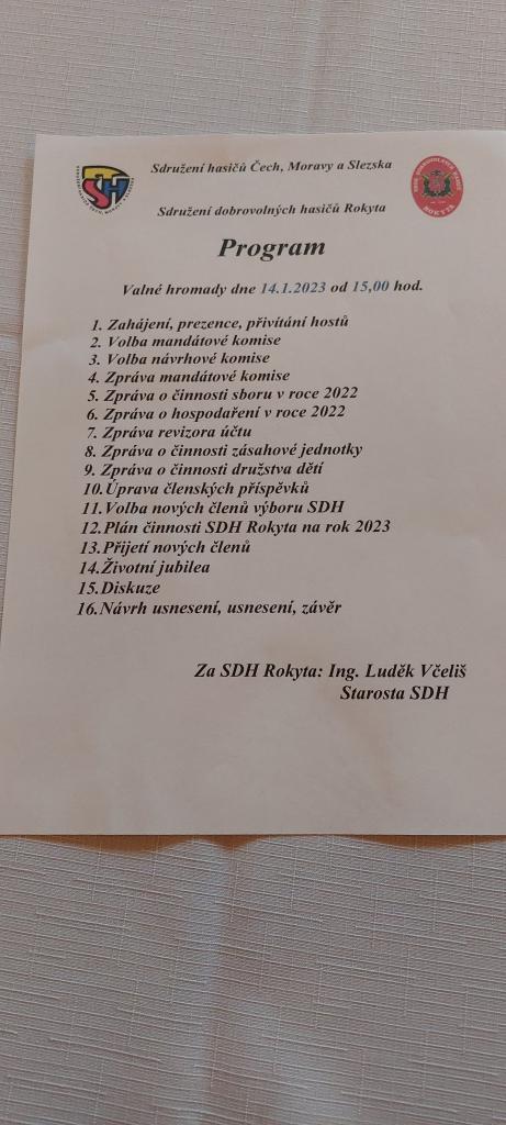 V sobotu 14.1.2023 se v společenském sále sešli členové a příznivci Sboru dobrovolných hasičů Rokytá na Valné hromadě. Přítomni byli i hosté z ostatních Sborů našeho okrsku.