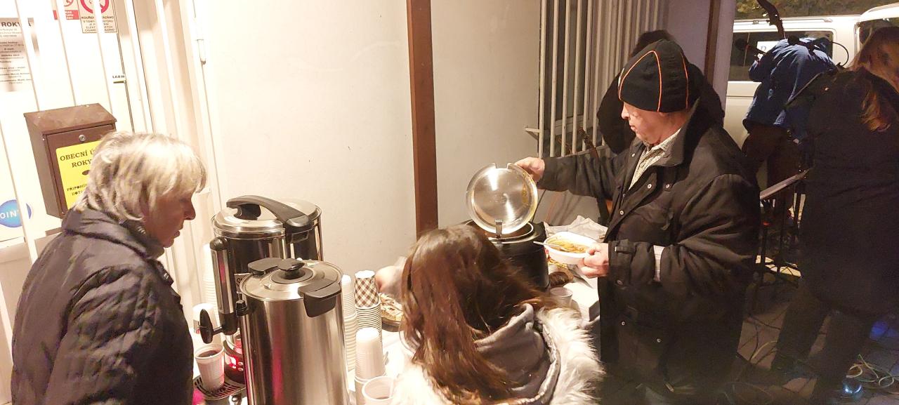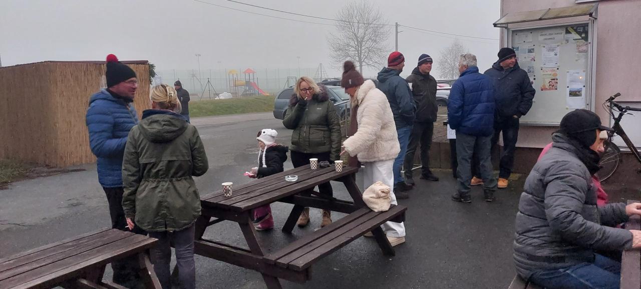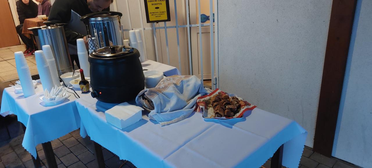 Po celou dobu trvání této vydařené akce přišlo všem vhod připravené a obcí hrazené občerstvení v podobě skvělé gulášové polévky z kuchyně manželů Bergmanových, svařáčku a dalších horkých (a pro otužilce) i studených nápojů.