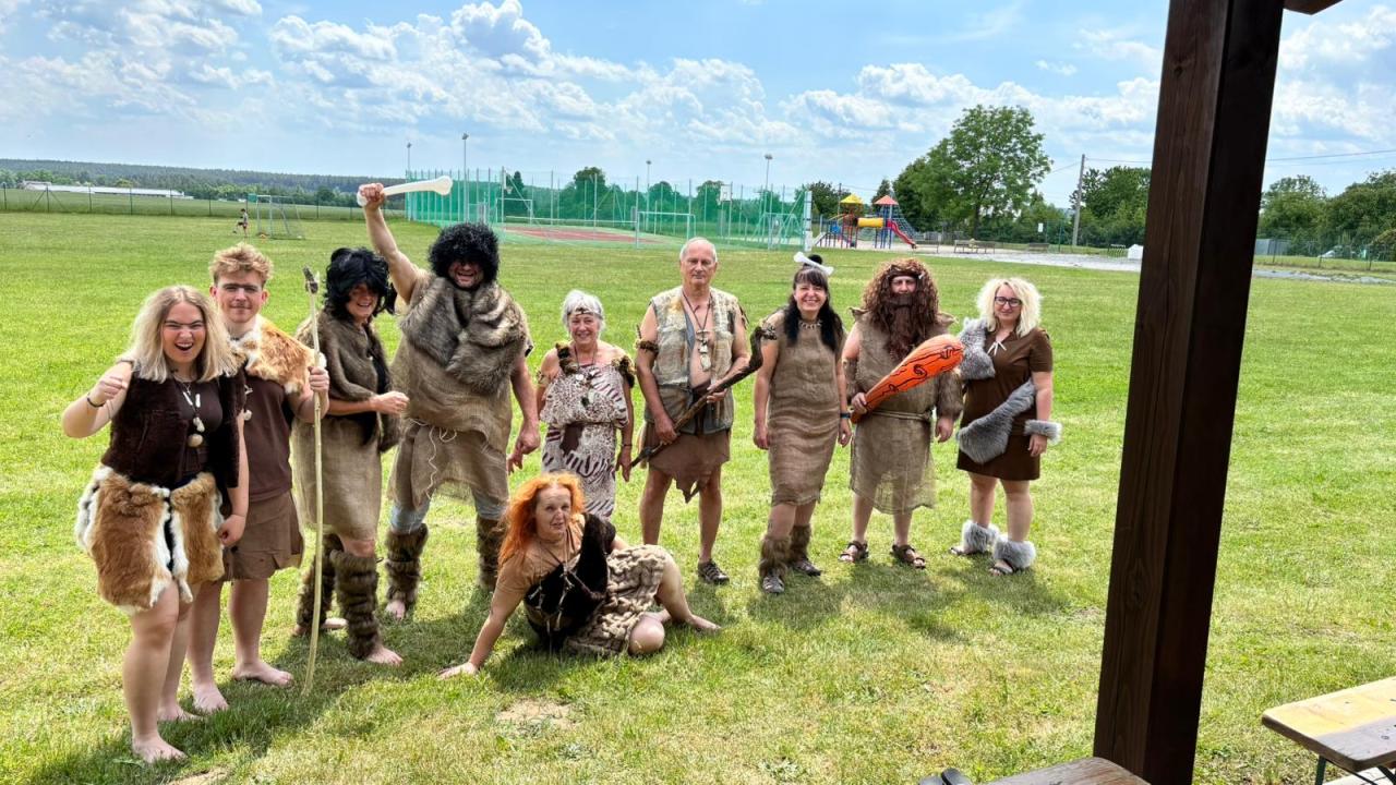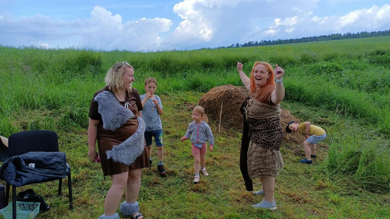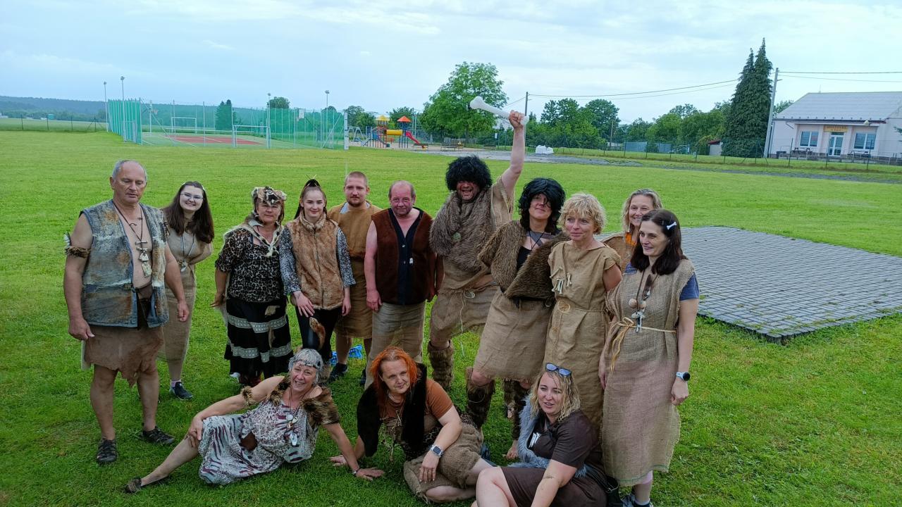 Jak je již tradicí, počasí nám moc nepřálo, ale jak bylo vidět, dětem to vůbec nevadilo. Letos se konečně podařilo jít již vloni plánovanou trasu po tak zvané Procházkově cestě, naší alejí, přes "grindlik" a zpět kolem hasičárny do volnočasového areálu. Cestou děti potkaly 23 neandrtálců a neandrtálkyň a plnily celkem 12 lehkých úkolů za které dostaly sladkou odměnu. Jen pro zajímavost: díky bohaté účasti dětí bylo rozdáno téměř 550 ks lízátek či bonbónů. Okruh dle vrácených vyplněných kartiček absolvovalo 45 dětí. To je vzhledem k deštivému počasí velmi slušná účast.